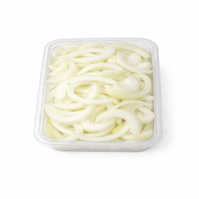 بصل أبيض طازج مقطع شرائح بعناية، جاهز للاستخدام في السلطات، السندويتشات، والطبخ اليومي، بنكهة خفيفة وقوام مناسب.